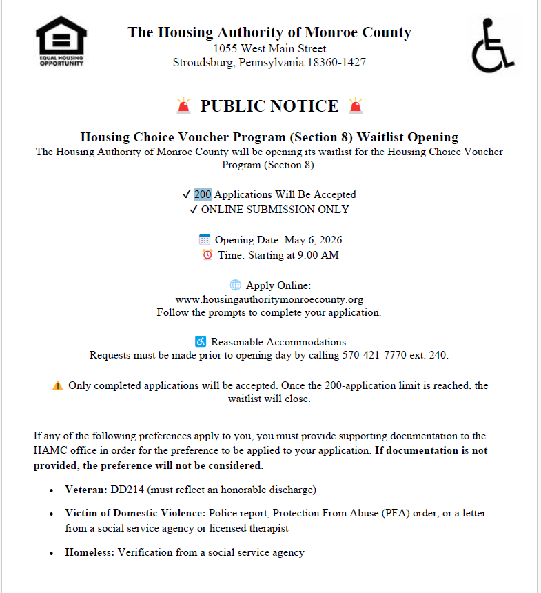 The Housing Authority will be providing rent certificates required to complete the rent rebate application. Accounting will be at the ...